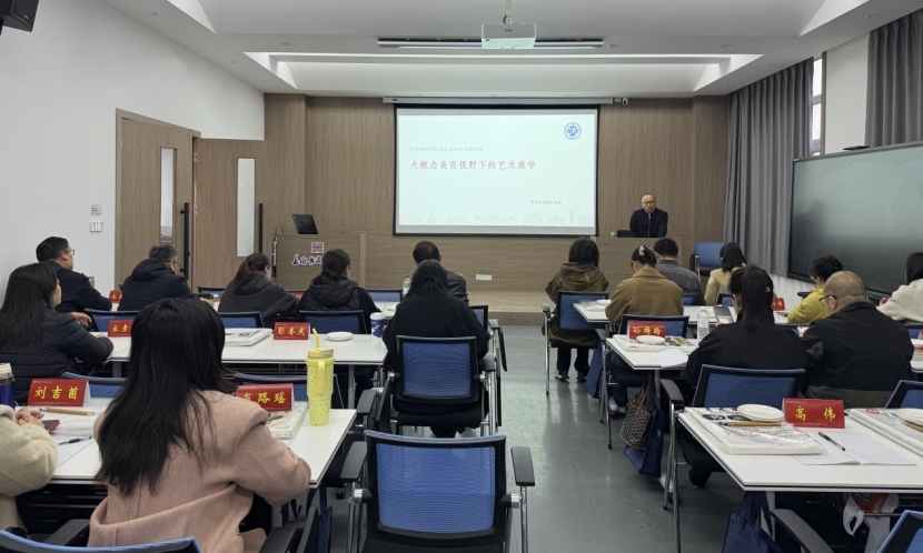 10月25日下午,我院特邀河南大学美术学院院长、中国文联文艺评论家协会会员席卫权教授于实训楼二楼艺言堂作题为“大概念美育视野下的艺术教学”的专题讲座。副院长董建义、学院师生及在校培训的国培学员共同参加。