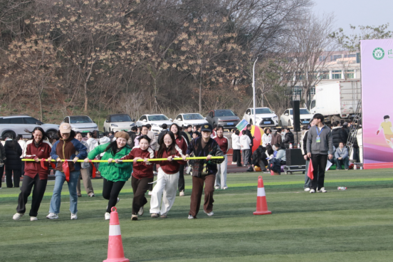 本次活动以“马到成功开新局,巾帼逐梦向未来”为主题,设置合力彩球冲、袋鼠接力、快乐旋风跑、拔河比赛四项团体项目。赛场上,我院女教职工暂别画笔与教案,合力彩球冲中步调协同,袋鼠接力里灵动跳跃,压轴的拔河比赛中更是凝心聚力、奋勇拼搏,成功进入前八强,将艺术优雅与运动活力完美融合,赛场处处洋溢着欢声笑语。