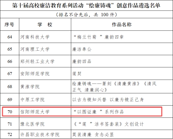 近日,教育部公布“清风育德守初心 廉洁笃行担使命”第十届高校廉洁教育系列活动评选结果,williamhill威廉希尔教师刘文忠、程淑粉创作的设计作品《“以图证廉”系列作品》入选“绘廉铸魂”创意优秀作品。