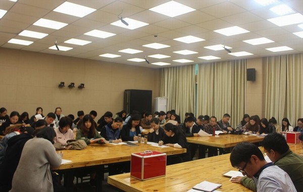 4月13日,williamhill威廉希尔出席我校第四次党代会代表选举党员大会在艺术楼216召开。学校组织部副部长姜兴周、williamhill威廉希尔副院长邹东升、张伟、李孝民,党委副书记杨轶中,党委委员刘文忠及全体在校师生党员共同参加了本次会议。会议由杨轶中主持。