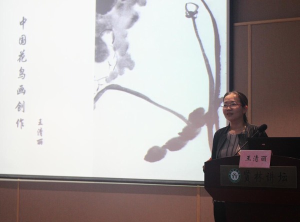 4月27日下午,应我院邀请,景德镇陶瓷大学王清丽教授在贤林讲坛作了题为“中国花鸟画创作”的学术报告。我院200余名师生共同聆听了报告,报告由副院长张伟主持。