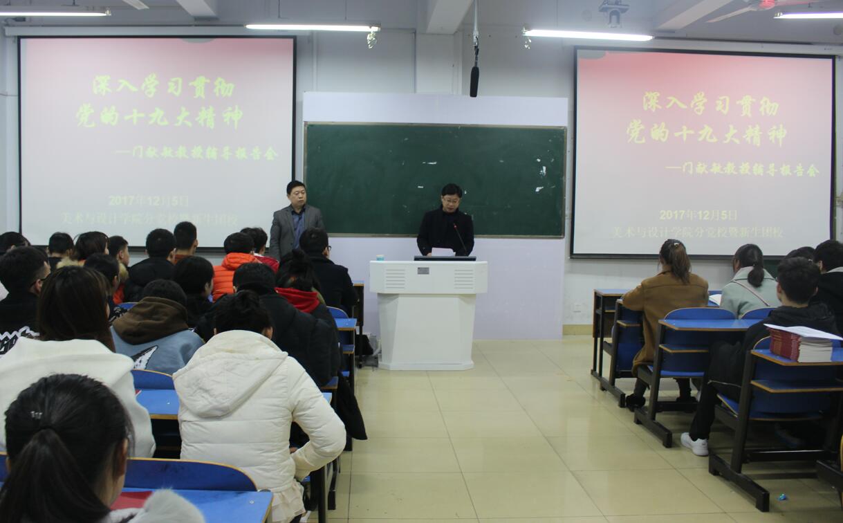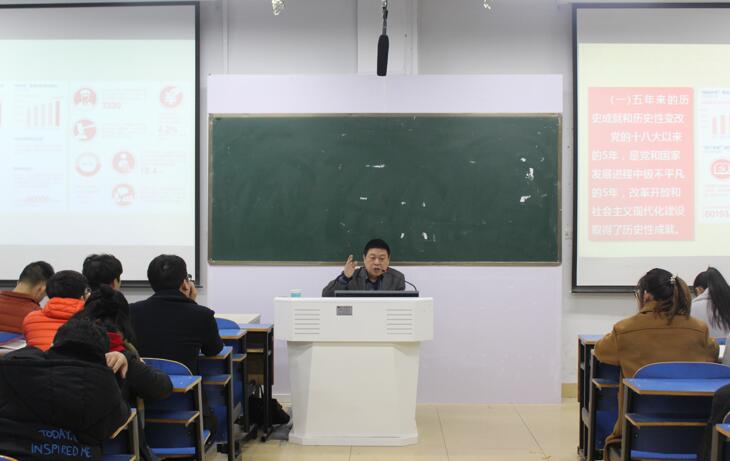 12月5日,应williamhill威廉希尔之邀,门献敏教授于艺术楼307室召开“绘就伟大梦想新蓝图 开启伟大事业新时代——深入学习贯彻党的十九大精神”辅导报告会,我院党委副书记杨轶中,辅导员饶海虹出席了本次会议,全体学生党员、青校学员及班级学生干部认真聆听了此次报告会。报告会由杨轶中主持。