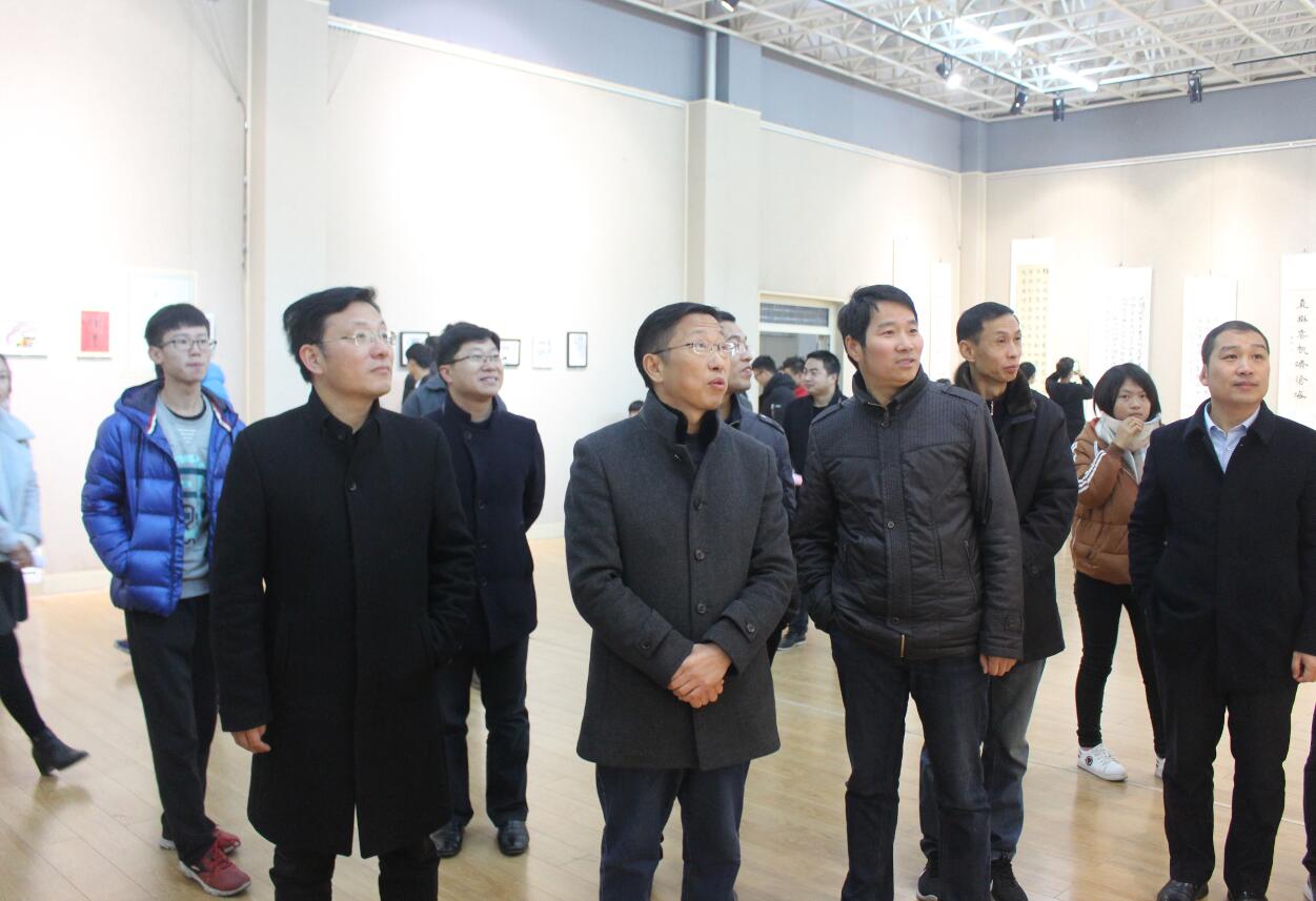 开幕式结束后,全体来宾和200余名师生相继到展厅观展。此次作品展以“青春建功十九大,师院学子展风采”为主题,共收集到不同风格的参赛作品400余幅,这些作品或书写于笔画之间,演乾坤气象;或篆刻点线之中,含孔孟中庸;或摄录光影虚实,观风物微澜,是当代青年学子们热爱传统文化、学习传统文化、弘扬传统文化的生动实践,展现了我校丰富的校园文化内涵。