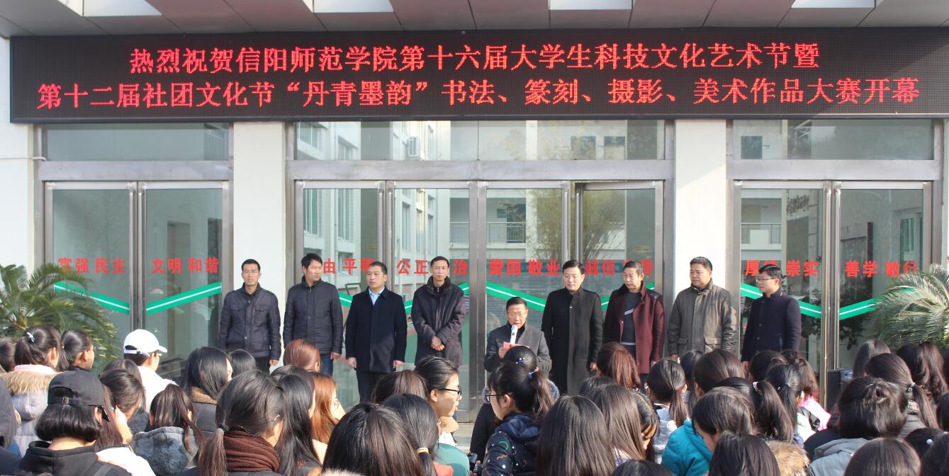 丹桂伴翰墨溢香,书声随歌声飞扬。12月5日,由校党委宣传部、教务处、科研处、学生处、团委主办,williamhill威廉希尔团委承办的“丹青墨韵”书法、篆刻、摄影、美术作品展在艺术楼前隆重开幕。信阳师范学院党委副书记郜火星及主办部门负责同志、williamhill威廉希尔党政领导班子成员出席了开幕式。