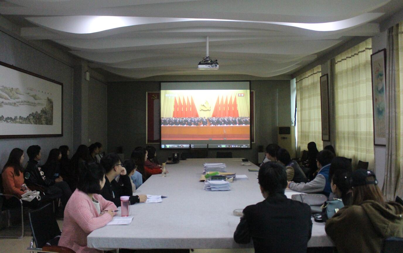10月18日上午,中国共产党第十九次全国代表大会在北京隆重召开,williamhill威廉希尔积极组织师生党员于艺术楼二楼会议室收看开幕式直播。我院领导班子成员及部分师生党员代表收看了党的十九大的开幕盛况。