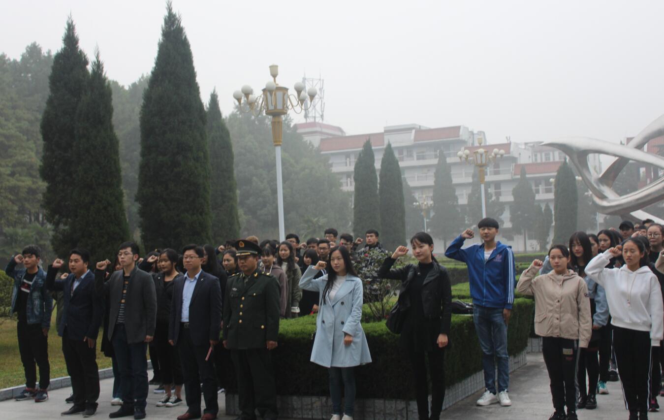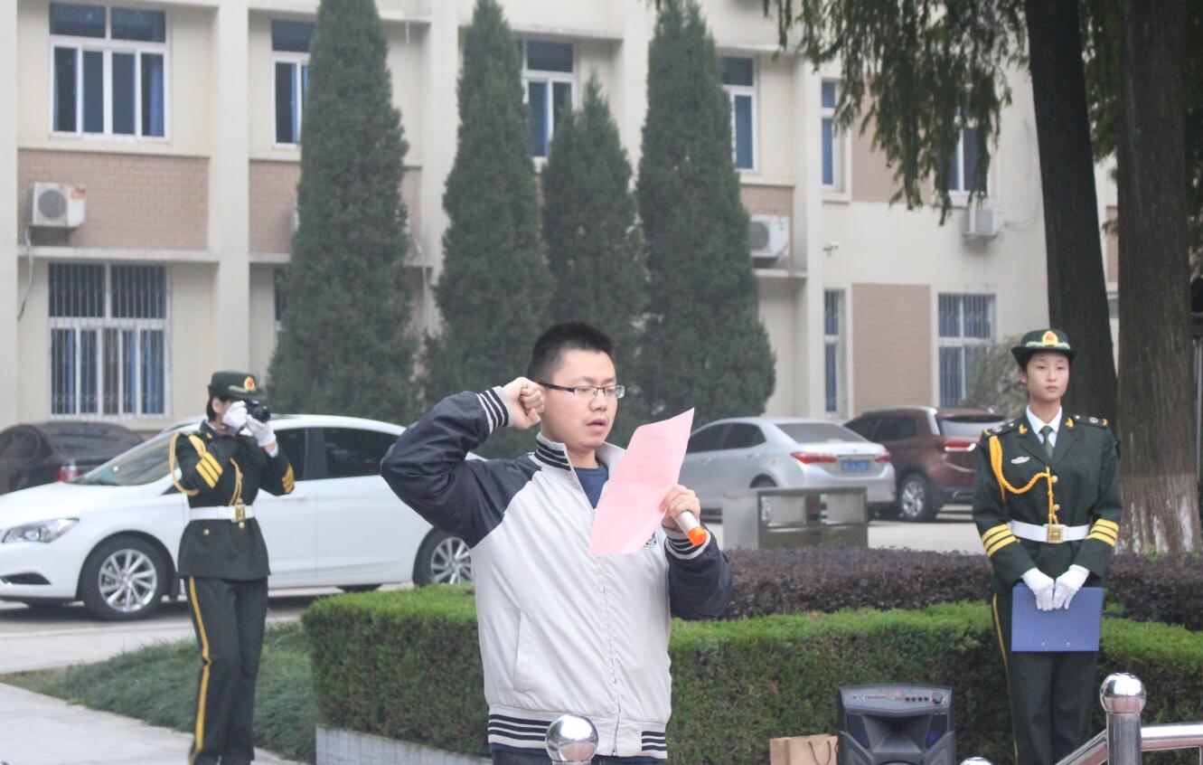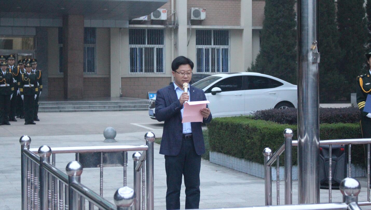 10月21日,williamhill威廉希尔于校综合办公楼前举行了“国旗下的礼赞”主题教育活动。我校人民武装部部长赵明民,我院党委副书记杨轶中,团委书记张锐,教师施远、饶海虹、郑波、邹青宸及2017级全体新生参加了此次活动。