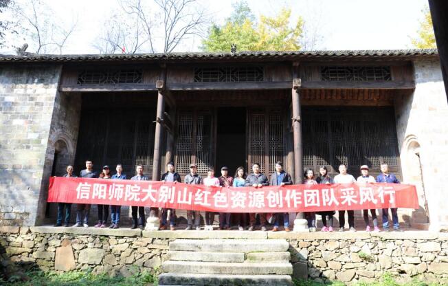 10月28-29日,信阳师范学院williamhill威廉希尔大别山红色资源创作团队一行十八人赴信阳新县采风,为大别山红色主题的作品创作搜集艺术素材。创作团队首先参观考察了位于新县千斤乡东南部的“中原银杏第一村”----杨高山千年古银杏林,除了王洼古银杏群之外,这里有红二十八军战斗旧址和英雄人物刘名榜游击战争遗址,村内革命志士众多,是千斤乡红色革命的发源地。随后创作团队一行人参观考察了新县周河乡毛铺村,整个村落为彭氏家族居住,村民组保存了较完整的明清时期建造的民居院落,独特的自然条件和深厚的人文历史气息激发了大别山红色资源创作团队的创作灵感,为艺术创作提供了丰富的素材。