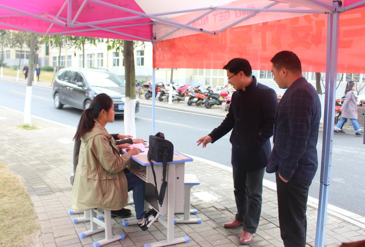 为及时向我校2018级毕业生提供最新就业信息,增加我校毕业生的就业机会,11月11日,信阳师范学院2018年冬季双选会在西篮球场热烈举行。我院积极响应学校号召,在西操场设立值班棚,及时为我院求职学子提供帮助。我院党委副书记杨轶中带领辅导员张锐、郑波亲临现场指导活动。