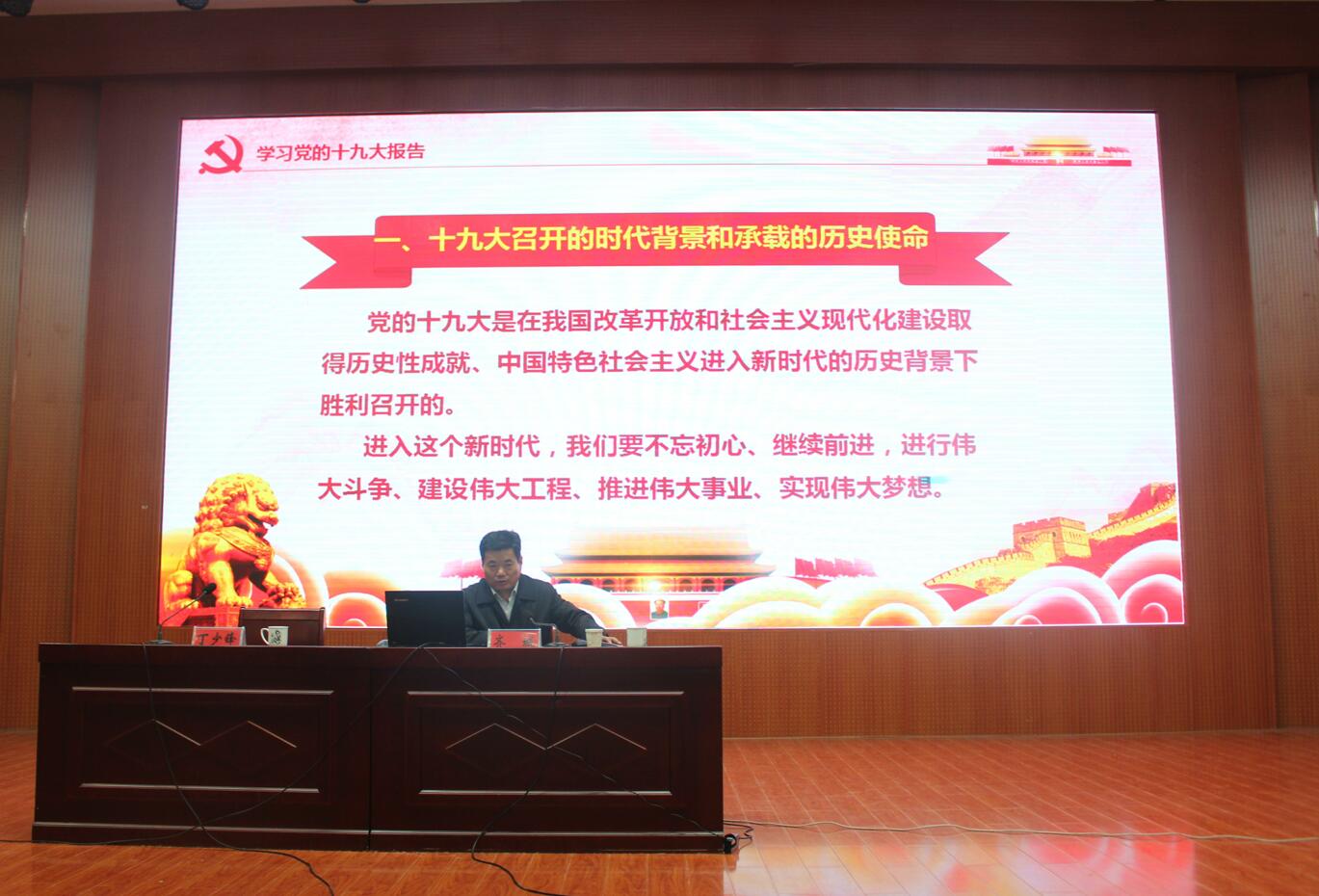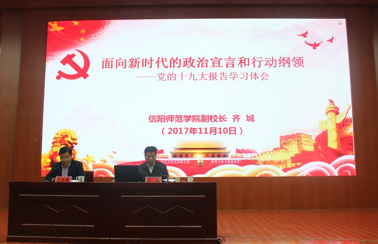 为深入学习贯彻党的十九大精神,11月10日晚,副校长齐城在逸夫楼报告厅作了《面向新时代的政治宣言和行动纲领——党的十九大报告学习体会》的专题辅导报告,williamhill威廉希尔、文学院、外国语学院党政领导班子成员、教师党员及五百余名学生代表聆听了报告会。报告会由党委宣传部部长丁少峰主持。