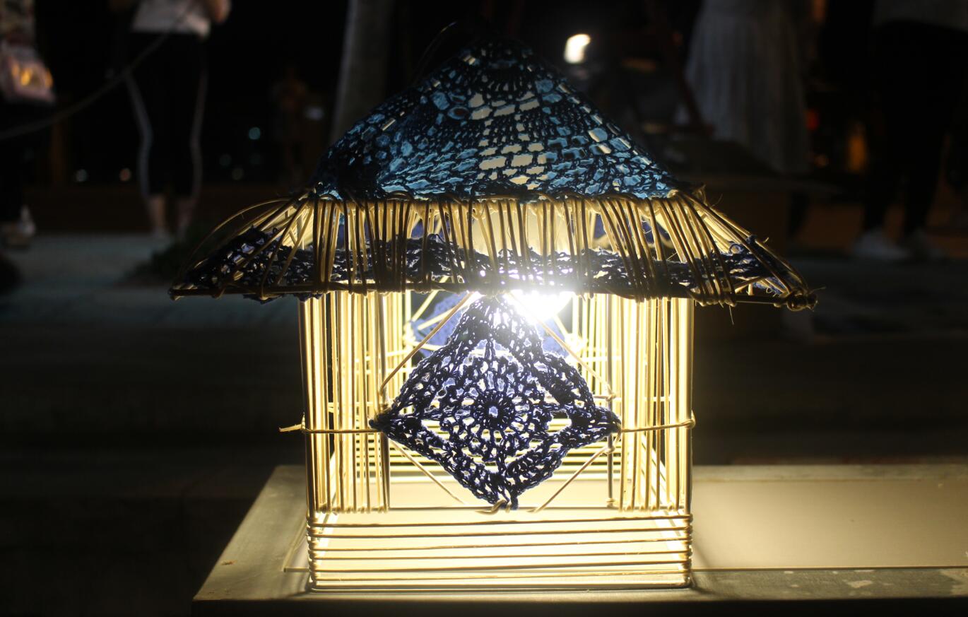 李俊对灯具设计展的举办给予了肯定,他指出每一份设计作品都是学生几年来的学习总结、检验与回顾,为师生之间、学校与社会之间提供了一个相互交流的平台,也是对williamhill威廉希尔教学成果的一次检阅。学生作品展作为williamhill威廉希尔的特色活动,整体上慢慢趋向成熟,对于williamhill威廉希尔自身教学工作的完善是具有重要意义的。 本次灯具设计展以“为自己点一盏灯,不是在手上,而是在心上”为主题,共展出灯具101个,包含吊灯、壁灯、台灯等形式,风格多样,有中式风格、现代简约风格、北欧风格。中式风格的灯具多以圆柱形或宫灯形为基础造型,并辅以手绘的兰草、荷花等,或是增添剪纸元素,使灯具变得古朴却不失灵巧。现代简约风格的灯具虽造型简单,但设计构思精巧独特,颇有不凡亦不繁的味道。北欧风格的灯具在外形设计上摈弃雕花或纹饰,代以简洁、直接的设计,选材多贴近自然。本次所展灯具均为原创,制作材料多样,且多取自于生活,利用废物改造的方式,使其焕然一新,细致的制作手法,创新的设计,无一不显示出设计者用心之深,手作之细,构思之巧。当每一盏灯被逐一点亮,温和的灯光吸引众多路人前来观展,设计者则在一旁耐心地为观众解答疑问,并讲解自己的设计理念,真诚的态度,精巧的构思,收获了观众们的一致好评。