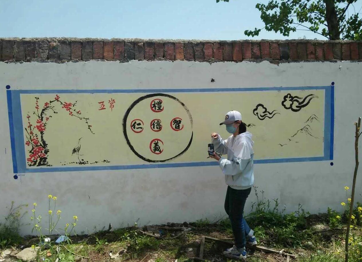 为了加强学校的社会帮扶工作,助精准扶贫,4月22日,我院13名师生志愿者来到我校定点帮扶村——潢川县谈店乡万营村,在万营村希望小学开展了墙绘活动。