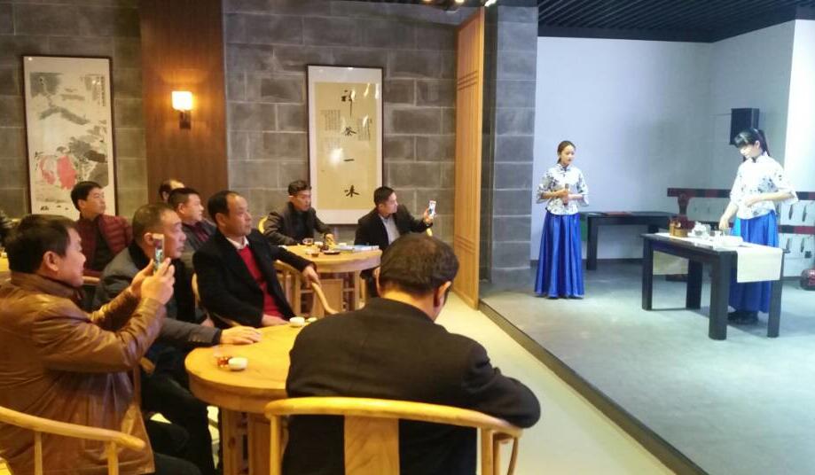 随后,在我院领导老师的陪同下,各企业负责人一行前往校史馆茶艺展区参观。在共同了解了信阳毛尖茶叶的生长环境和制作方法后,观赏了由我院教师设计制作的陶瓷及木质茶具,其造型流畅、古朴典雅,获得了在场嘉宾的一致赞赏。最后他们一同欣赏了我校茶艺师精彩的茶艺表演。