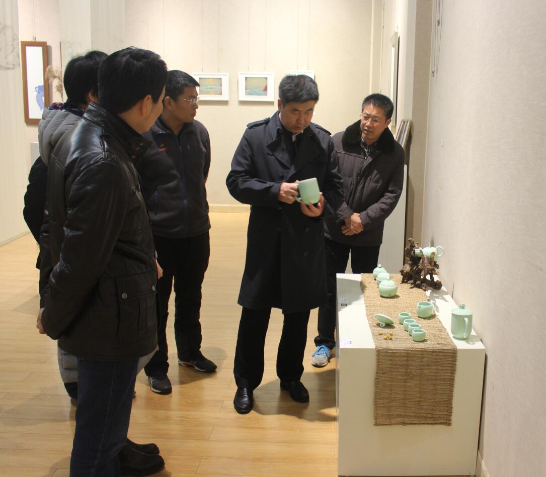 观展过程中,宋争辉对展出作品给予了较高评价,他说,作者较强的设计功底和制作技巧在于对茶具尺寸的把握,颜色的调和中,而茶具中包含的宽广眼界、豁达胸襟的茶文化精髓也在简单流畅的线条中充分展现。张睿在介绍自己作品设计理念时说,信阳茶文化源远流长,她的作品追求回归生活本质,做独具信阳特色的茶具。随后宋校长指出,此次展览的举办不仅体现了williamhill威廉希尔师生独特的设计理念,同时也较好的体现了个人专业水平,他希望我院能更好地促进校企合作和专业转型,加强合作交流,形成具有师院特色的品牌专业。最后,宋争辉鼓励我院师生继续努力,不断深入学习,以此次校企合作为契机,实现校企资源的有机结合和优化配置,进一步做好相关专业的转型发展工作,不断深化教育教学领域的各项改革。