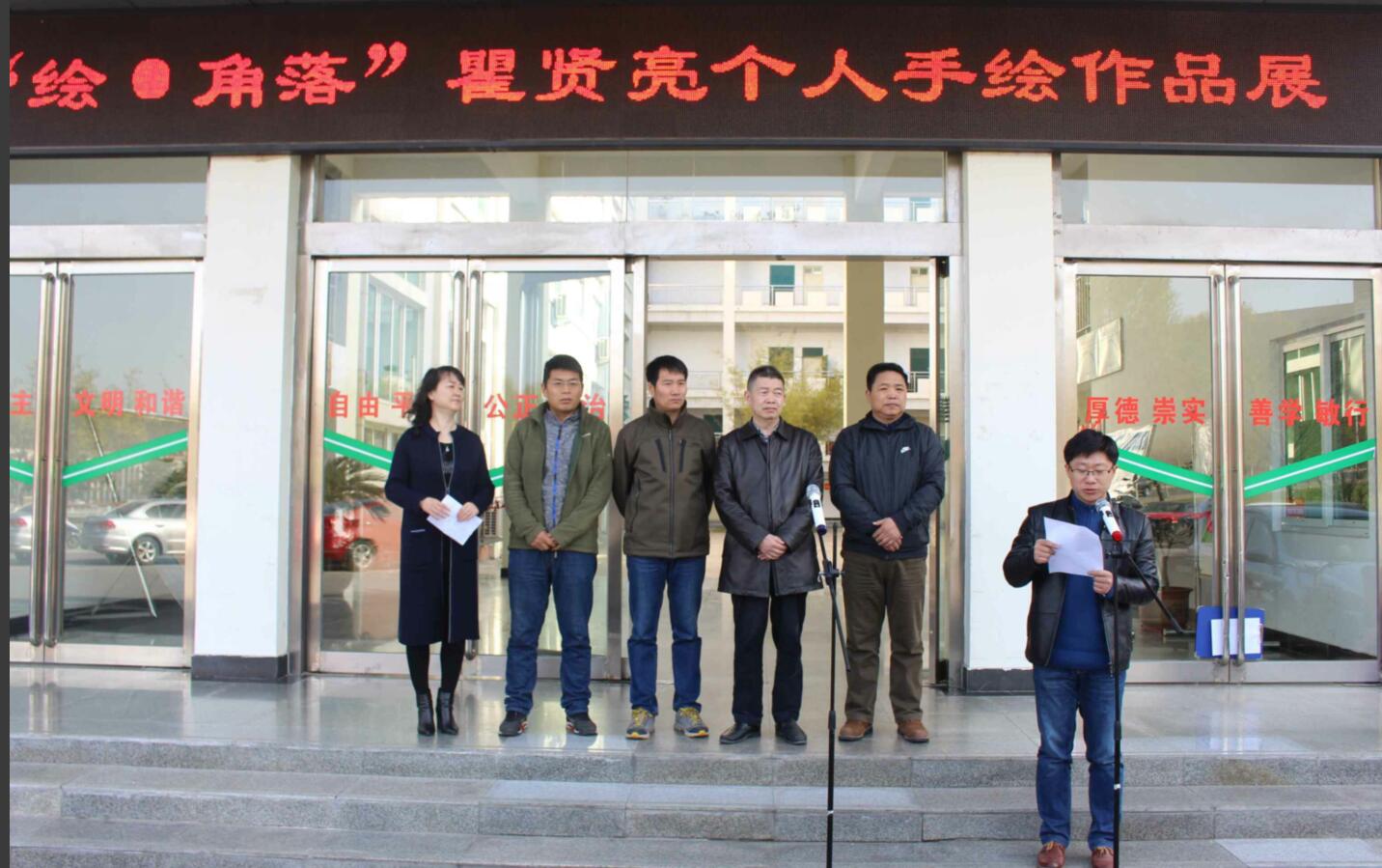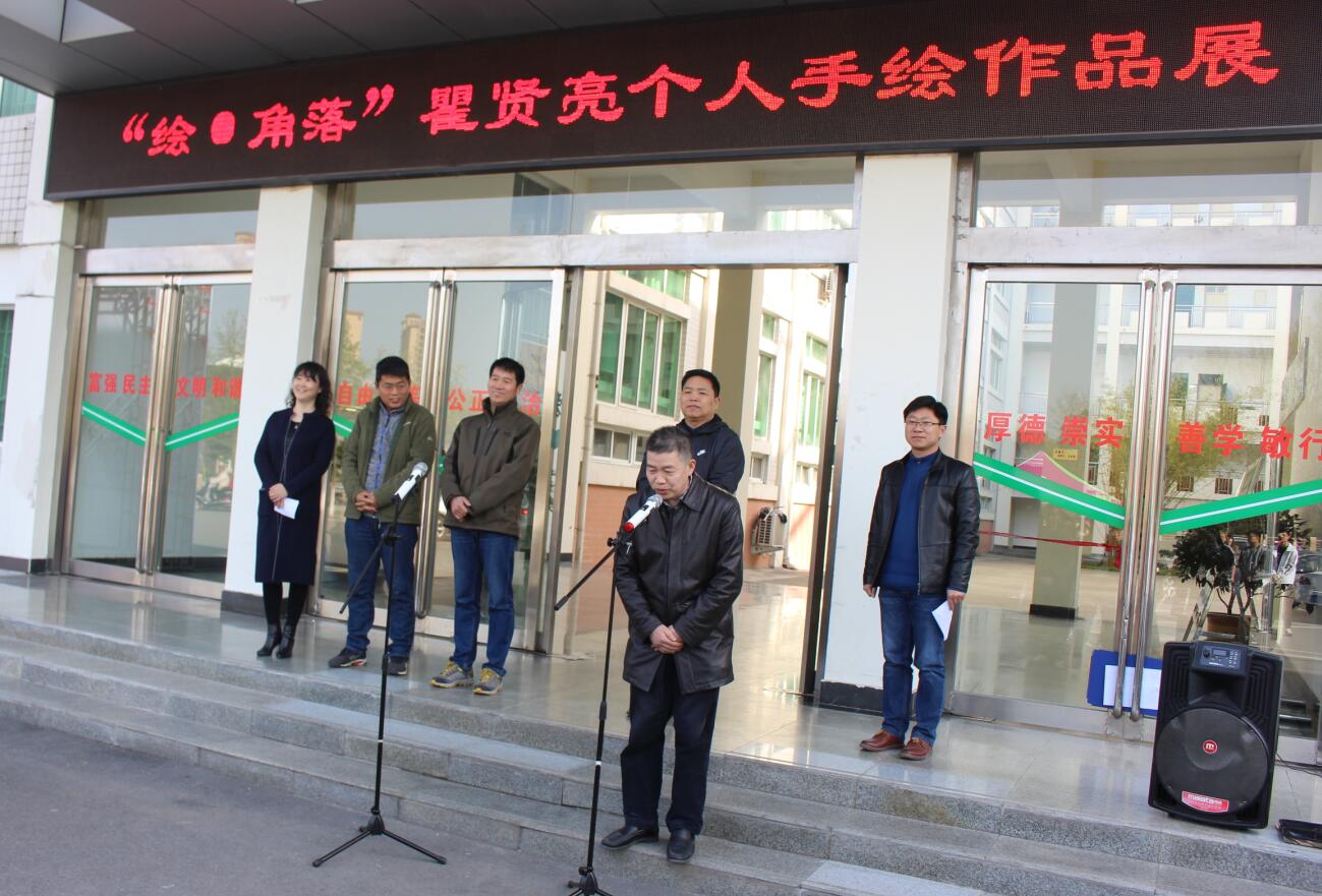 翰墨飘香,丹青溢彩。3月27日,williamhill威廉希尔2013级美术学班瞿贤亮同学的“绘•角落”个人手绘作品展于艺术楼前隆重开幕。信阳师范学院教务处处长李宝峰,williamhill威廉希尔副院长邹东升、张伟、李孝民、涂湘东,党委副书记杨轶中及百余名师生出席了开幕式。开幕式由杨轶中主持。