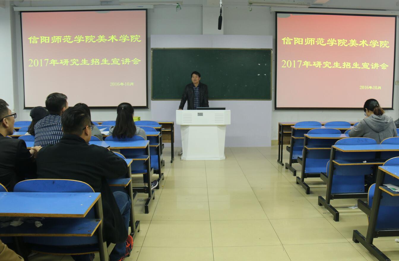 宣讲会上,邹东升首先就我院基本情况与考研准备两方面进行详细介绍。他说,2017年我院预计招研究生五人,然后他根据今年的考研形势向同学们分析了报考我院的难易程度,为在场考研的同学报考信阳师范学院美术学院增加了一条有利选择。同时,他鼓励考研同学坚定目标、脚踏实地,将考研作为提升自身综合素质的机会,并希望同学们通过各种渠道多了解考研信息,积累考研经验。随后,韩澄从学院概况、专业方向、报考条件、优惠政策、研后就业等方面为同学们做大致介绍,分析了报考北京联合大学研究生的有利之处。