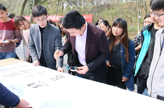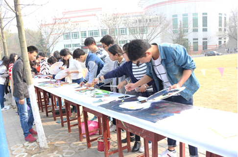 开幕式结束后,各参赛代表队在团总支老师和学生会的带领下,有序进入思齐路东侧进行书画创作。