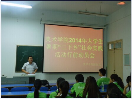 6月29日, 美术学院举行2014年暑期“三下乡”实践活动行前动员大会在艺术楼306举行。美术学院团总支书记周贤亮和“三下乡”社会实践全体成员共同参加了此次会议。