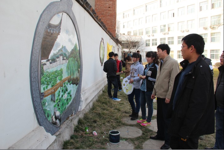 3月5日下午,利用自身专业优势,美术学院团总支、大学生艺术设计协会在全校范围内开展“践行雷锋精神、美化校园环境,建设和谐校园”活动。在逸夫楼荷塘美术学院党总支书记周子良、副书记李孝民亲临现场指挥绘画专业同学,用手中的画笔为已破损的墙绘重新勾勒出优美的线条,染上唯美的色彩,建成一面靓丽鲜艳的荷文化墙。此外美术学院还组织青年志愿者、学生党员维护清理全校的路灯杆和道路标示牌。