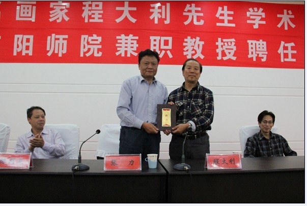 聘任仪式由美术学院院长刘根货教授主持。张力代表学校致辞并向程大利先生颁发了兼职教授证书;程大利发表感言,深切表达了对教师职业的热爱和受聘我校兼职教授的荣誉感和责任感。