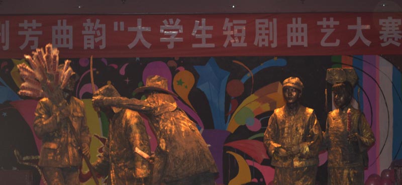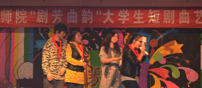 11月15日晚,我校第十三届大学生科技文化艺术节“剧芳曲韵”大学生短剧曲艺大赛决赛在理科楼报告厅举行,我院短剧《这不是演习》以9.30分的成绩位居大赛第三名。短剧《这不是演习》的创作以我校在校大学生的社团生活为背景内容,在反映大学生们青春、活泼、健康、向上的精神风貌的同时,更多地体现了大学生们在校园紧张有序的学习和生活中积极实践、勇于创新的青春风采。决赛现场,短剧《这不是演习》以紧凑流畅的剧情、幽默清晰的语言、生动形象的表演,博得了在场领导和师生们的阵阵掌声,短剧后半部分的“铜人”真人秀更是将比赛的现场气氛推向了高潮,在彰显美术学院专业特色的同时,为全校师生奉献了一幕别开生面的行为艺术典范。比赛结束,大赛嘉宾校学生处处长于继武在与我院指导教师、演员交流的过程中对我院的这一短剧给予了高度评价:“节目专业特色突出、主题鲜明、形式新颖,充分展现了大学生的青春气息与活力,可以看出整个节目的策划和筹备过程是做了大量细致工作的。”