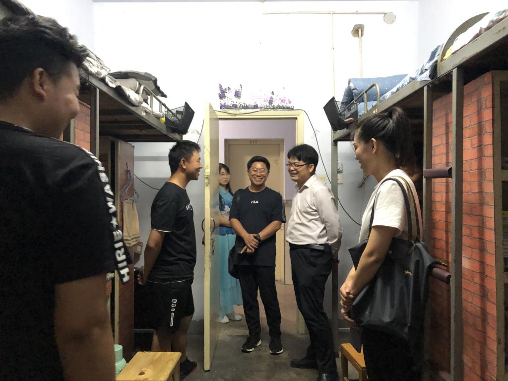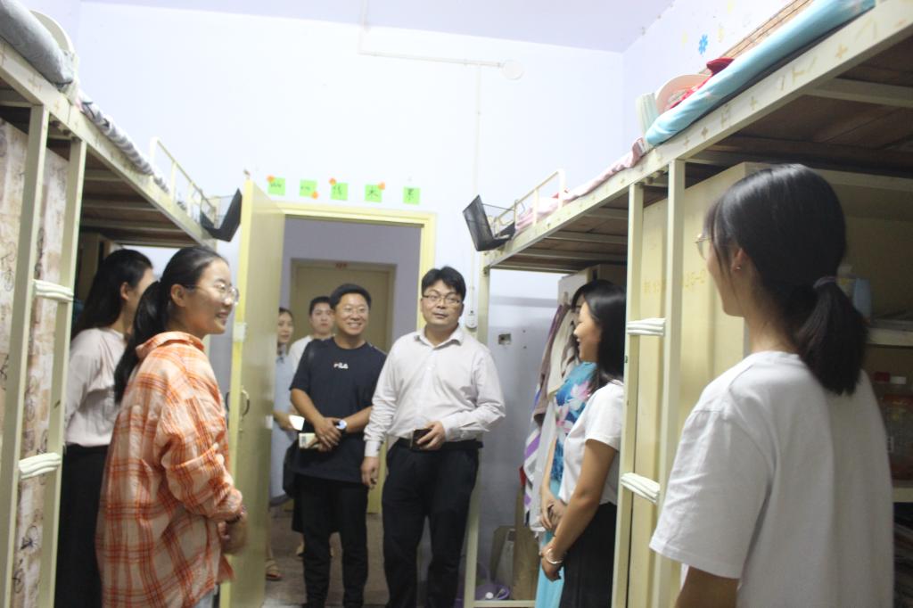 为深入了解我院学生住宿情况。9月29日晚,我院党委书记朱四倍,党委副书记杨轶中在全体辅导员、班主任的陪同下走访了我院学生宿舍。