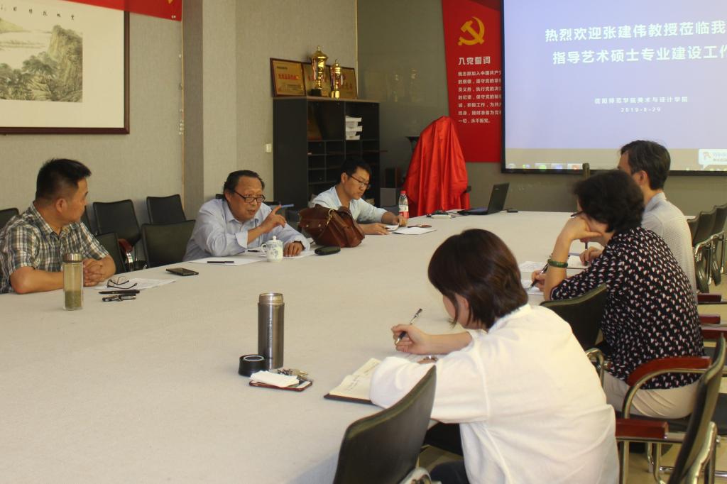 9月29日,应我院邀请,河南师范大学美术学院院长、中国美术家协会会员、河南省青年美术家协会主席张建伟教授在我院艺术楼二楼会议室就我院艺术硕士专业建设工作进行指导。音乐与舞蹈学院院长陈新宇、传媒学院院长焦素娥、我院副院长张伟、教师代表刘文忠共同参加了本次会议。