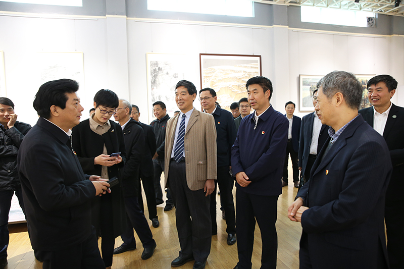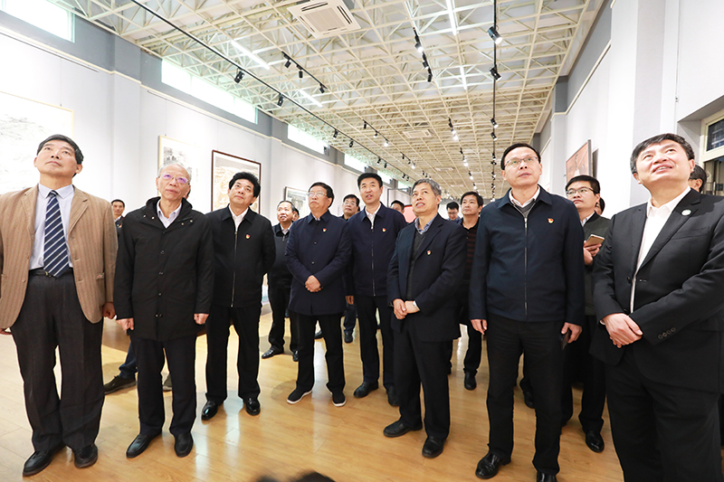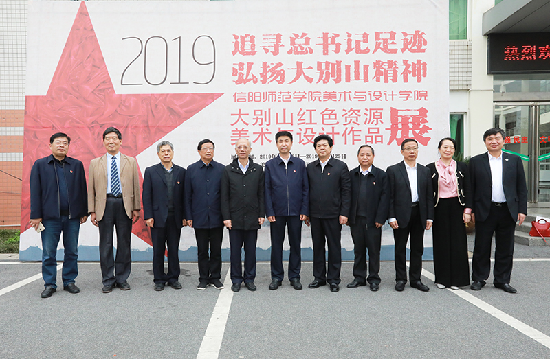 揭牌仪式结束后,谢天学一行集体参观指导了我院“追寻总书记足迹 弘扬大别山精神”红色作品展。校党委书记宋争辉,校长李俊,我院党委书记朱四倍,副院长邹东升、张伟等领导全程陪同参观。