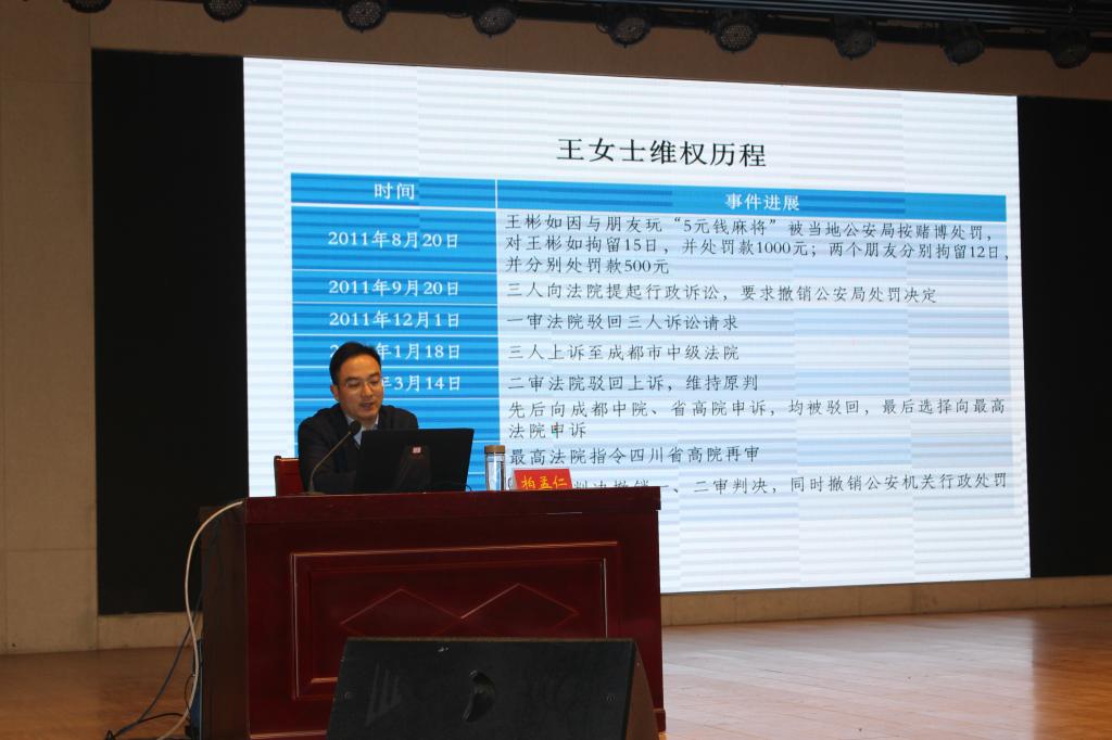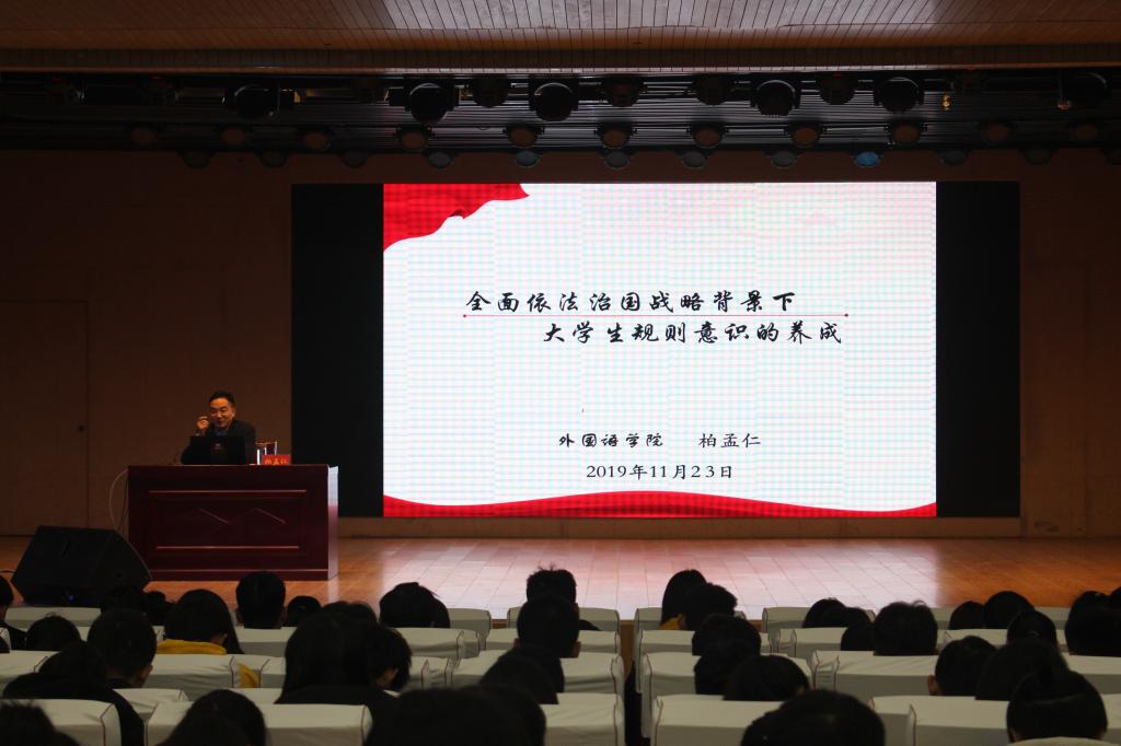 柏孟仁以"全面依法治国战略背景下,大学生规则意识的养成"为主题,结合各大社会事件,分别从遵纪守法、善于用法、新时代爱国等多个方面对新生进行思想教育。他提出,爱国主义是中华民族的民族心,民族魂,是中华民族的重要财富,作为新时代社会主义接班人,我们需要心怀祖国,永远爱国。接着,柏孟仁提出当代大学生在校期间应遵纪守法,敬业爱国。最后,柏孟仁与同学共同探讨了大学生活的意义,以独特的演讲方式赢得了在场师生的热烈掌声。在团课结束后,杨轶中就此次团课做了总结,对柏孟仁出席此次团课表示感谢,同学们积极回应。