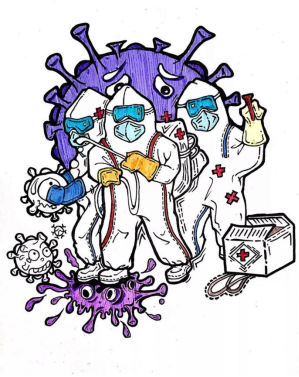 灵感:突然爆发的疫情,很多人被隔离在家,感觉一切都被迫停止,值得庆幸的是还能画画。偶尔刷刷新闻看到的都是关于疫情的信息,每当看到那些支援一线医护人员满满都是感动,前线有专业的医护人员在战斗,而后方的我们少出门,勤洗手,保护好自己,就是对前线最大的支持。