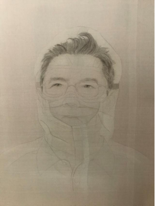 灵感:鼠年伊始,新型冠状病毒来势汹汹,肆虐全国,在这场抗疫战争面前没有人可以旁观,这幅《坚守》线描作品描绘的是一名医生,表达作者对奋斗在前线的医护人员的致敬,医者仁心,在疫情面前他们用自己的生命去拯救病人的生命,他们是最美逆行者。