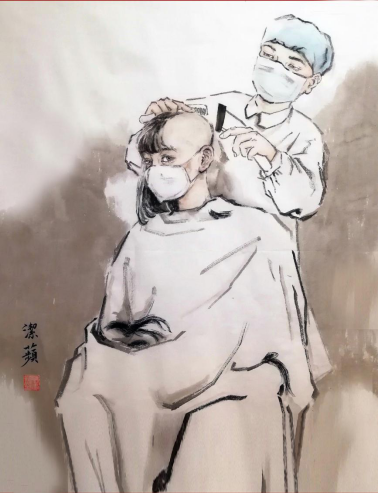 灵感:剪去的不只是她美丽的秀发,也剪去疫情中的病毒,剪出抗疫必胜的精气神。