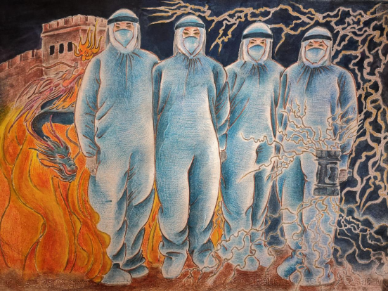17美术-何静怡-《致敬抗击疫情的超人们》