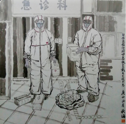 灵感:大灾大难面前,作者用作品表达对这些无私奉献的医护人员发自内心的感动,对各行各业的爱心人士崇高的敬意。