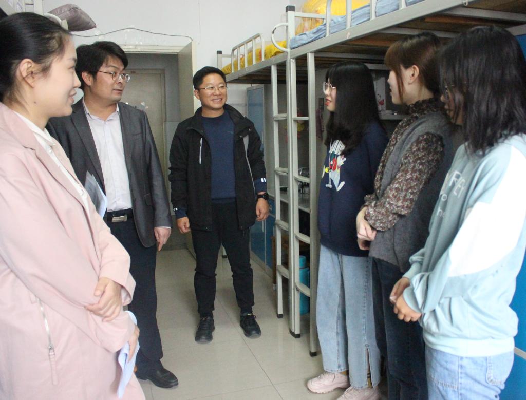 为了增进我院领导老师与新生之间的感情。10月10日,我院党委书记朱四倍,党委副书记杨轶中,新生班主任饶海虹、胡霁芳以及新生班助一同来到宿舍看望慰问新生。
