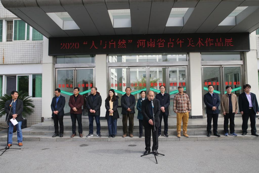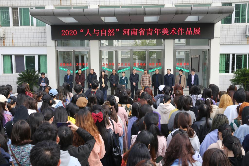 翰墨丹青绘盛世,青年才俊展芳华。10月17日,2020“人与自然”河南省青年美术作品展在我院开幕。信阳市人大常委会副主任熊静香,信阳师范学院副校长刘彦明,河南师范大学美术学院教授、博士生导师、河南省青年美协名誉主席张建伟,周口师范学院美术学院教授、河南省青年美协副主席、河南省油画艺术研究会副会长吴经垿,河南省青年美术家协会主席石贵州,信阳市文联主席、信阳市美术家协会主席殷丽,共青团信阳市委副书记谢华,信阳市美术家协会副主席、秘书长刘松,信阳市美术馆馆长、市美协副主席李一冉,我校宣传部、教务处、团委相关负责同志出席开幕式,williamhill威廉希尔负责同志及师生代表参加开幕式。开幕式由williamhill威廉希尔副院长邹东升主持。