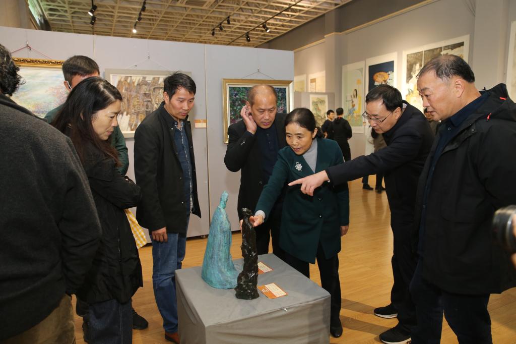开幕式结束后,各位领导嘉宾相继进入艺术楼展厅观展。