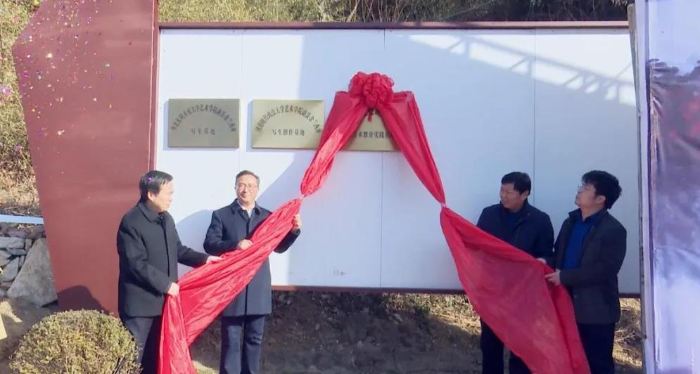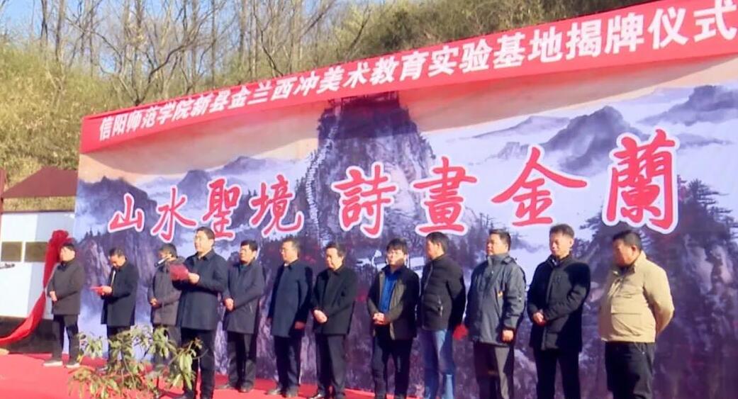 随后,与会领导和嘉宾共同为信阳师范学院新县金兰西冲美术教育实践基地揭牌。