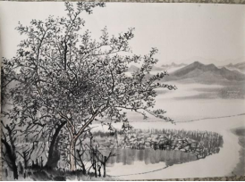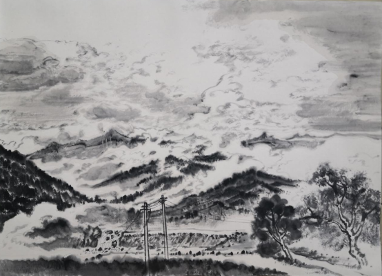 接下来的几日,邹东升老师以示范教学的方式,和学生们一起进行山水写生,告诉同学们如何选景、构图、取舍,以及如何将笔墨运用到对景写生之中。