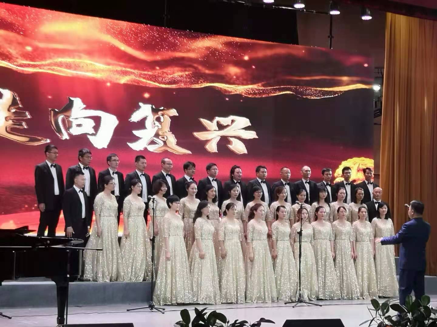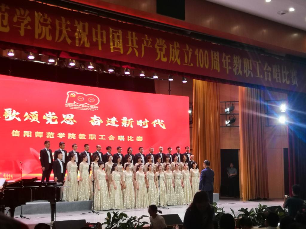 比赛现场热火朝天,25支代表队轮番登台献唱,由我院带来的《走向复兴》以高昂的曲调,振奋人心的歌词,唱响着时代的主旋律,诉说对党的无限深情,用饱含深情的声音唱出对伟大中国共产党百年华诞的真挚祝福。期间,我院教师攻坚克难,定期进行训练,成效显著,最终为大家呈现出一场精彩卓绝的视觉盛宴。现场掌声雷动、气氛浓烈,观众或神情激昂、或沉醉其中,不忍错过一幕幕的精彩瞬间。最终,我院以排名第六的成绩荣获本次合唱比赛二等奖,我院指挥张伟荣获优秀合唱指挥奖。