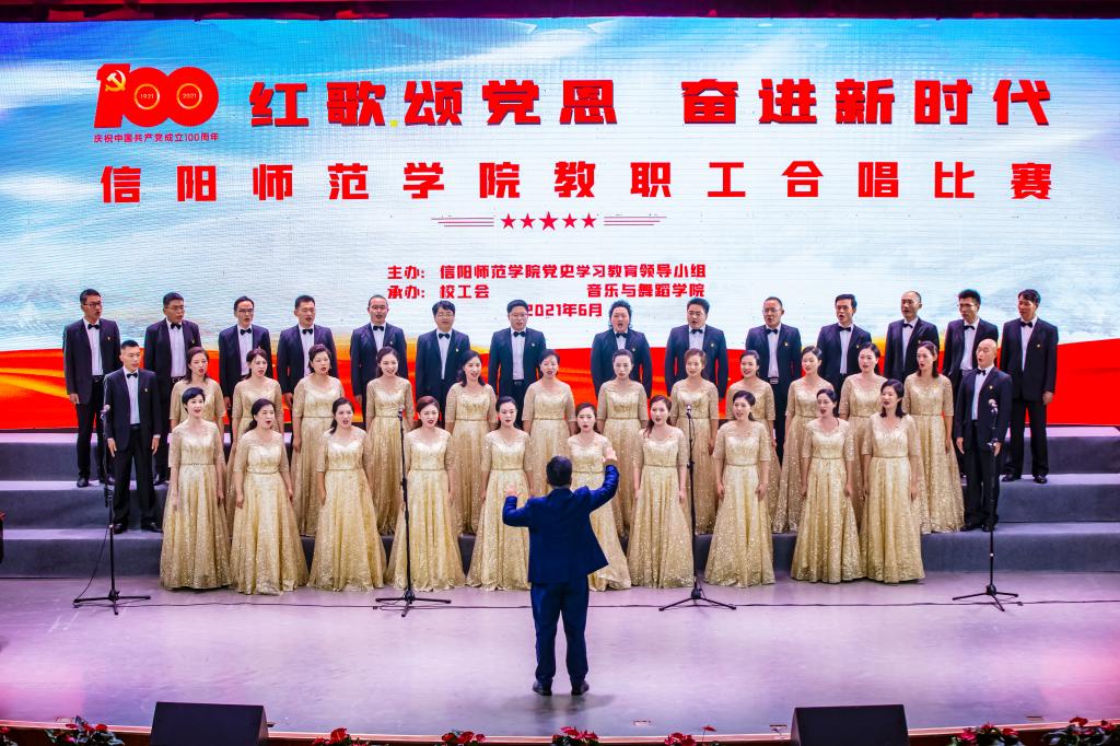为庆祝中国共产党建党100周年,6月22日下午,由校党史学习教育领导小组主办、校工会和音乐与舞蹈学院承办的“红歌颂党恩、奋进新时代”教职工合唱比赛在艺术楼音乐厅隆重举行。全校各单位师生代表500余人共同观看比赛。由我院39名教职工组成的williamhill威廉希尔合唱团参加了此次比赛,荣获二等奖。