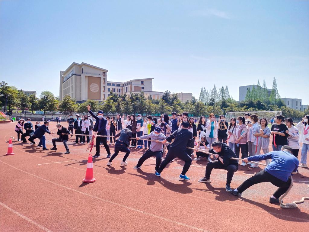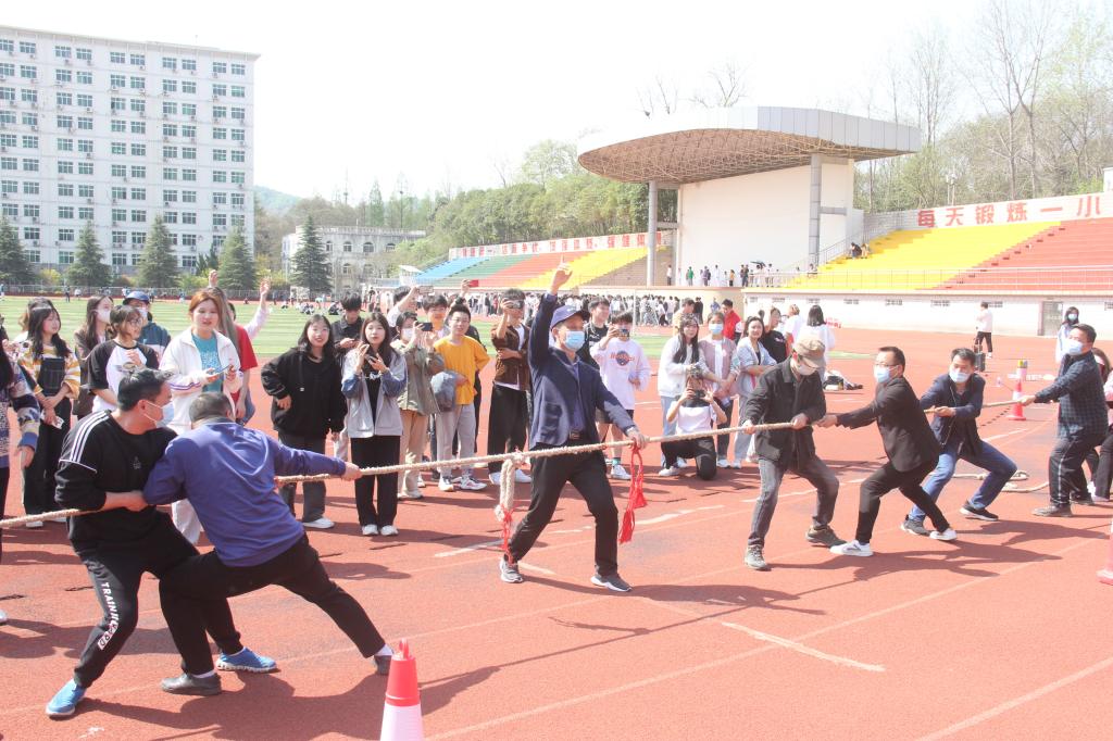 随着一声哨响,参赛师生们高喊着口号,双手紧握长绳,降低重心,双脚稳扎地面,团结一致,卯足了劲儿拼命往后拉,其余同学纷纷在队伍旁边指挥加油,呐喊声回荡在操场上,此起彼伏,好不热闹。双方在经过数十秒的战斗后,直到再一哨声响起,赛场上便响起了一片胜利的欢呼声——比赛分出胜负。比赛过程中参赛师生个个斗志昂扬,在一声声呐喊中,师生融为一体,彼此的心贴的更紧,他们用汗水诠释了团结的含义,用力量体现了向上的追求,他们顽强的毅力与拼搏的精神令人动容,整场比赛在裁判员公平公正的裁决下有序进行。