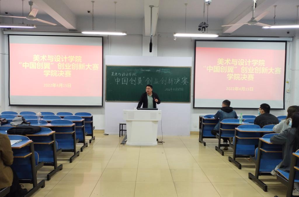 2022年4月15日,我院在艺术楼307举办了“中国创翼”创新创业学院决赛,院党委副书记周刚及决赛选手共同参加,活动由郑波老师主持。