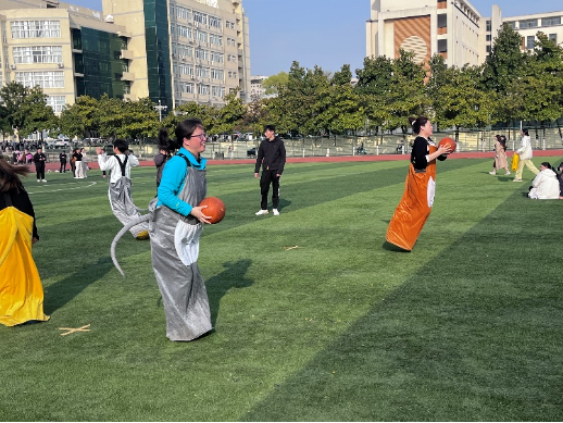 正值人间春风时,运动场上显英姿。在比赛中,她们争分夺秒,默契配合,奋勇向前。她们一改三尺讲台上不苟言笑的模样,化身一只只可爱的袋鼠在操场上奋力向前跳跃;扛起小舟在这长长的跑道上,青春飞扬的向前冲,现出飒爽风姿,亮出真我风采……