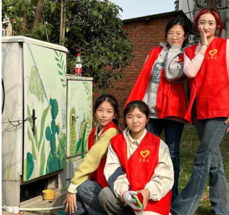 3月3日早上,16名党员及青年志愿者就来到华森社区,提起画笔,用自己的专业特长去美化社区电表箱,提升社区文化内涵。他们的画笔如炬,笔尖上燃烧着永不褪色的雷锋精神,像一把火,把温暖传递。志愿者们一点一勾一提,经过一天的努力,一幅幅有声有色的春出现在了社区的电缆箱上,让平时没人注意的电缆箱一个下午迅速走红,成为了社区的“新兴红人”。