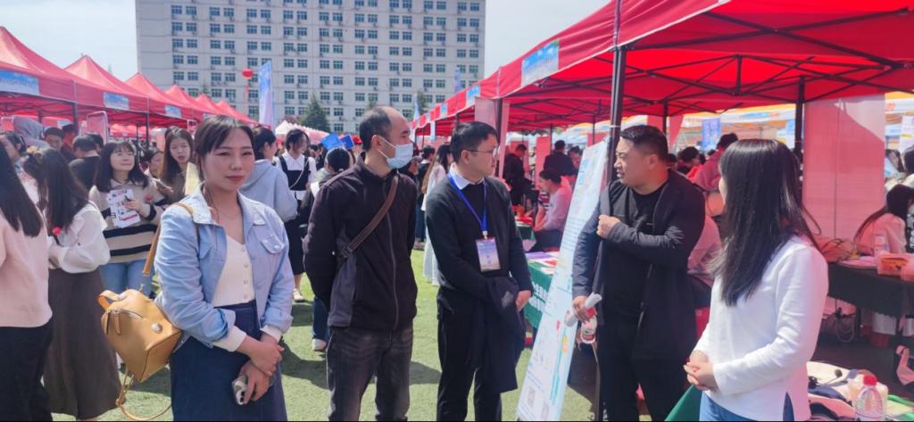 为贯彻落实党中央、国务院关于“稳就业”、“保就业”决策部署,搭建用人单位和毕业生双向选择交流平台,更好地满足用人单位的人才需求,4月8日上午,“河南省毕业生就业市场豫南分市场暨信阳师范学院2023届毕业生春季双向选择洽谈会”在我校西运动场隆重举行,我院2023届全体毕业生积极踊跃参加。我院党委书记兰洋,副书记周刚,副院长张伟、张江波,院长助理甘露,辅导员郑波到现场指导就业工作。