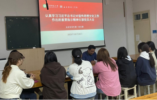 支部党员深入学。10月24、25日,教工支部与学生支部以支部为单位召开支部大会,集中学习习近平总书记对宣传思想文化工作作出的重要指示和全国宣传思想文化工作会议精神,以增强工作能力本领,充分发挥基层党支部战斗堡垒作用,加强基层党组织建设。