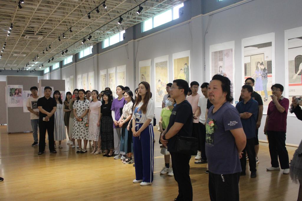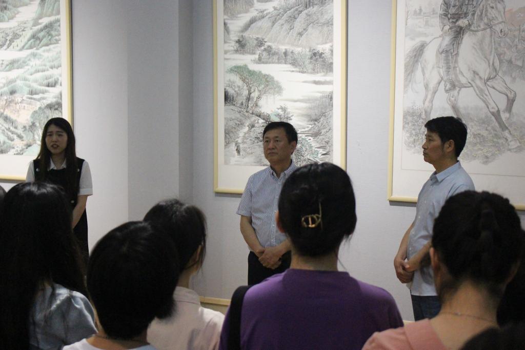 思政课前,陈登报和美术学院部分师生在艺术楼展厅一起听取了该院青年教师明政现场讲述的红色故事:“不屈忠魂留青山”——毛国兴的革命故事。